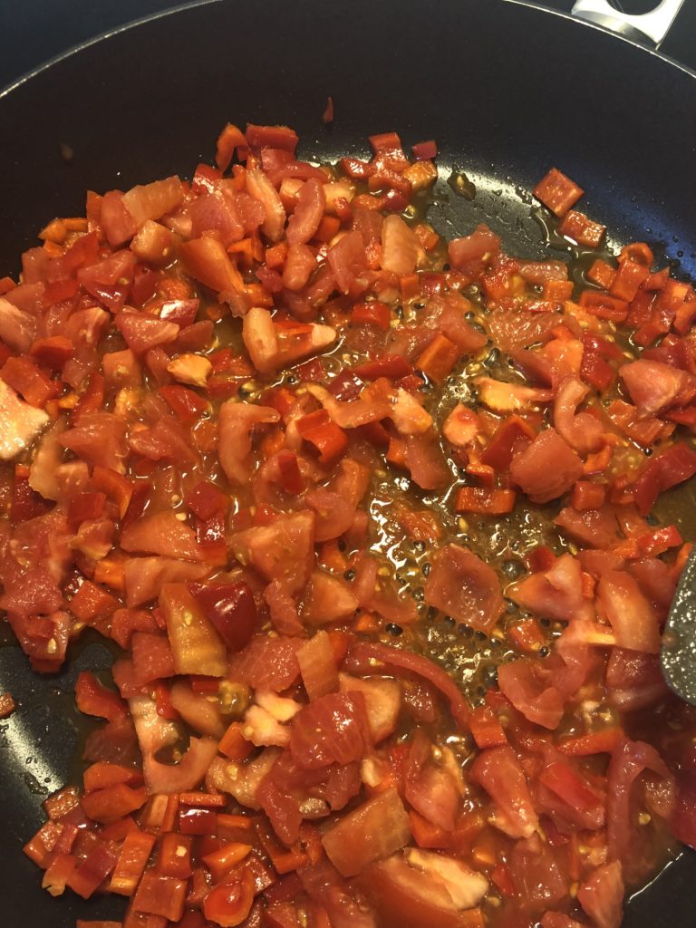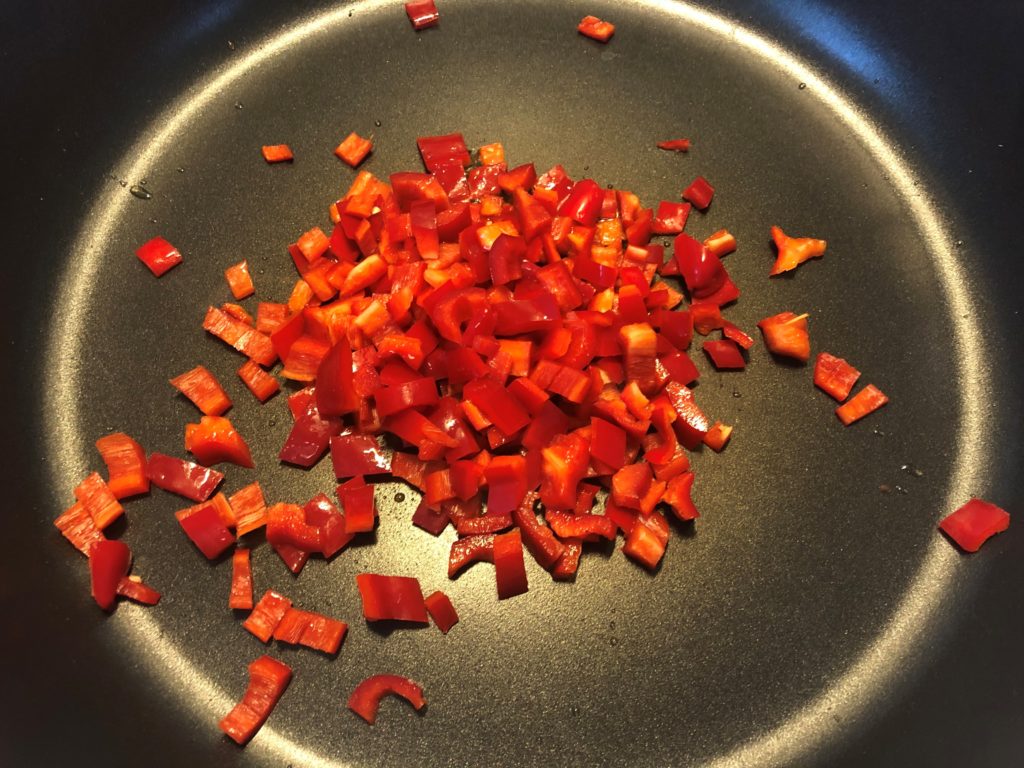 Kuullota paprikoita pannussa oliiviöljyssä muutama minuutti.