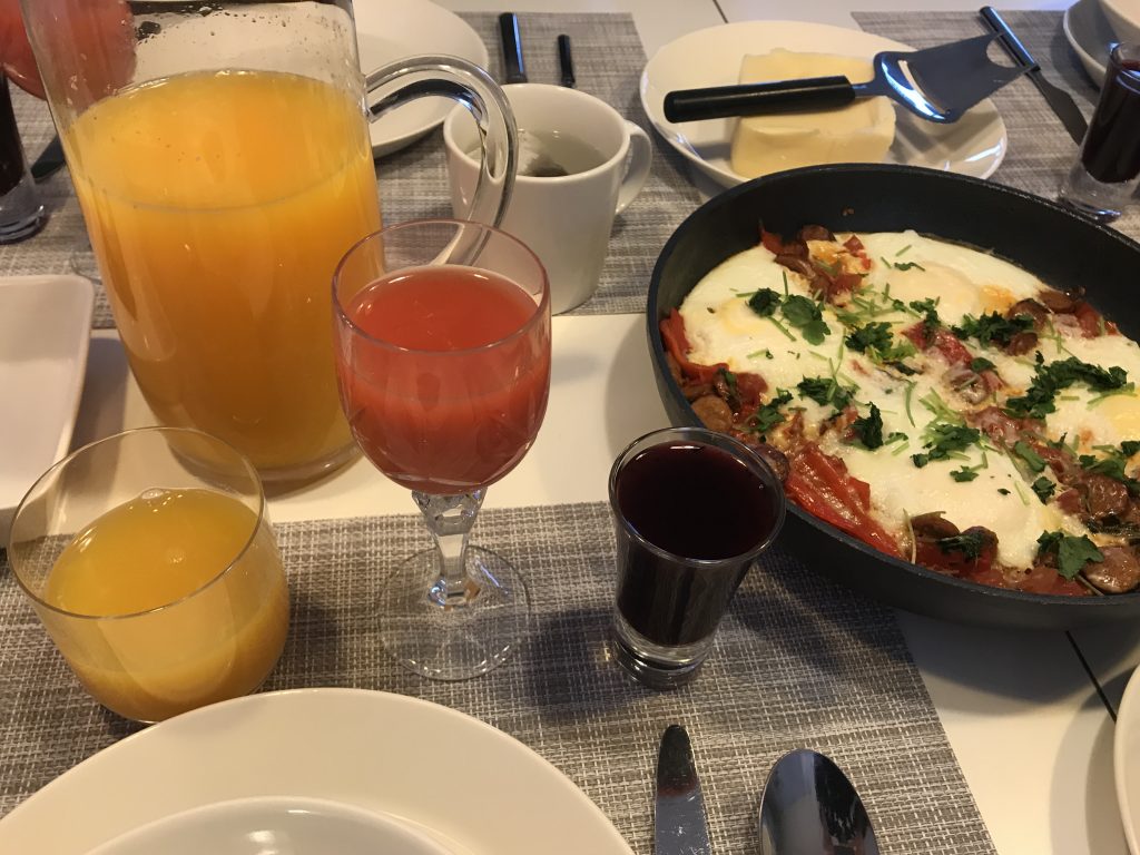 Aloitin valmistelut jo lauantai-iltana, koska paprika pitää paahtaa uunissa kuoren poistamiseksi ja paahtoaika on 15-20 minuuttia. Oli siis ajallisesti käteveämpää tehdä se jo edellisenä iltana. Raastoin myös Manchegon valmiiksi ja otin kananmunat huoneen lämpöön. Muuten munakas oli suhteellisen nopea tehdä ja maistui kaikille. Itseäni miellytti varsinkin paprikan pehmeä maku. Söimme munakkaan paahdetun täysjyväpaahtoleivän kera ja tein vielä tuorepuristettua appelsiinimehua.