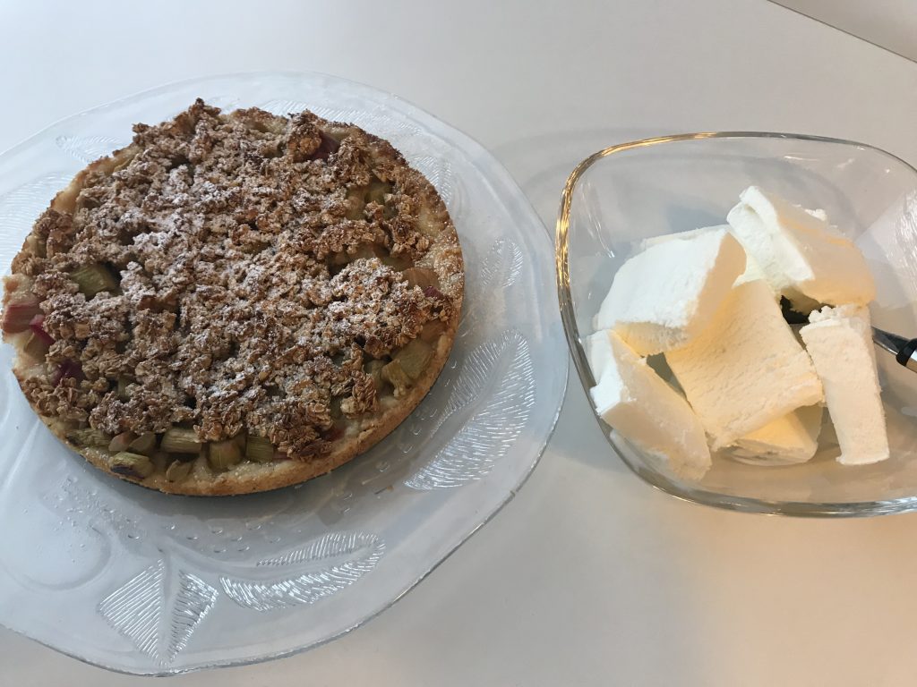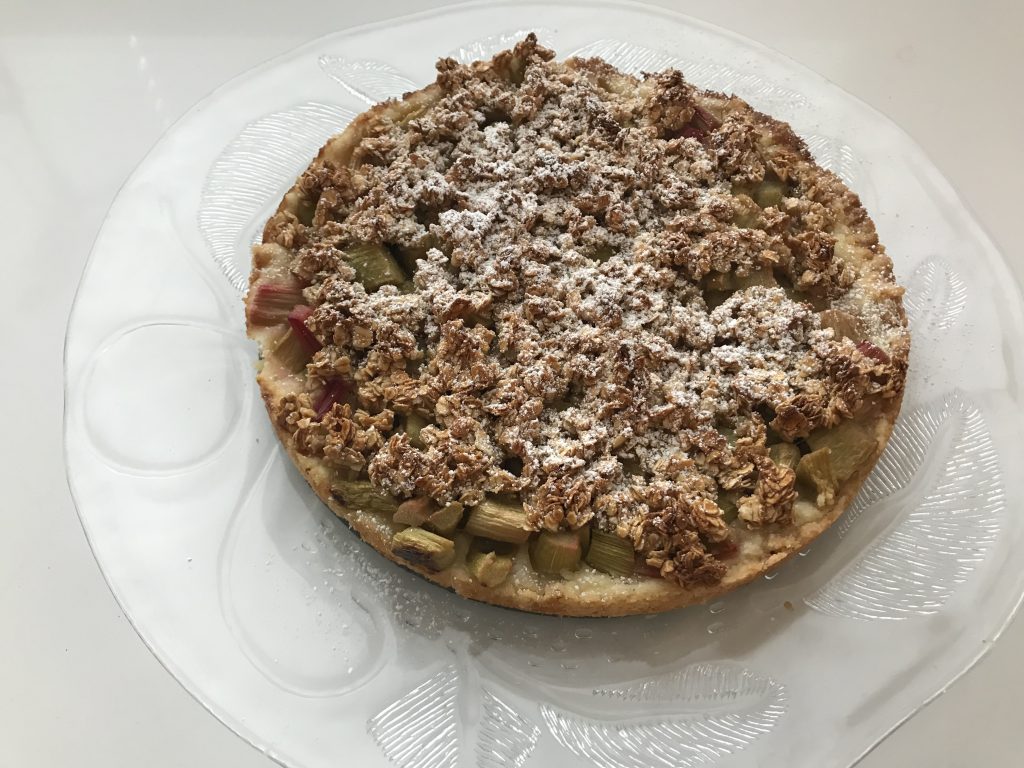 Pakasteesta löytyi vielä yksi pussi raparperia ja siitä innostuneena, päätin sunnuntaina leipoa piirakan. Leivon harvoin, koska meillä ei juuri kukaan ole makeiden leivonnaisten perään. Tein annoksen puolikkaana pieneen irtopohjavuokaan ja se riitti mainiosti lounaan jälkeiseksi jälkiruuaksi jäähallien vaihdon välissä. Jäipä piirakasta vielä palanen lämpimäisiä naapuriinkin vietäväksi. Alla ohje kuitenkin kokonaisena isolle (normaalille) irtpohjavuoalle. Piirakan voi tarjota vaniljakastikkeen tai vaniljajäätelön kera. Meillä oli tällä kertaa jäätelöä. Ohjeen olen poiminut talteen Kotivinkistä.