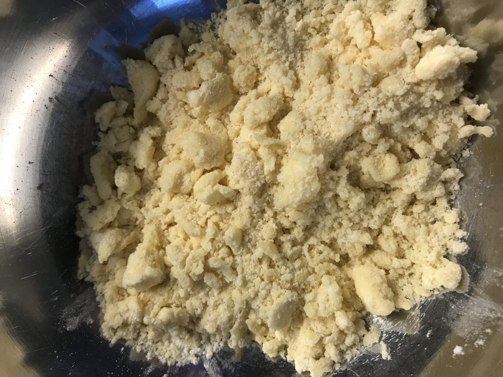Kuumenna uuni 200 C. Pilko rapaprperi tai sulata pakastetut. Kaada ylimääräinen neste pois, jos sulatat raparperit pakasteesta. Yhdistä pohjan kuivat aineet ja nypi huoneen lämpöisen voin joukkoon muruiksi.