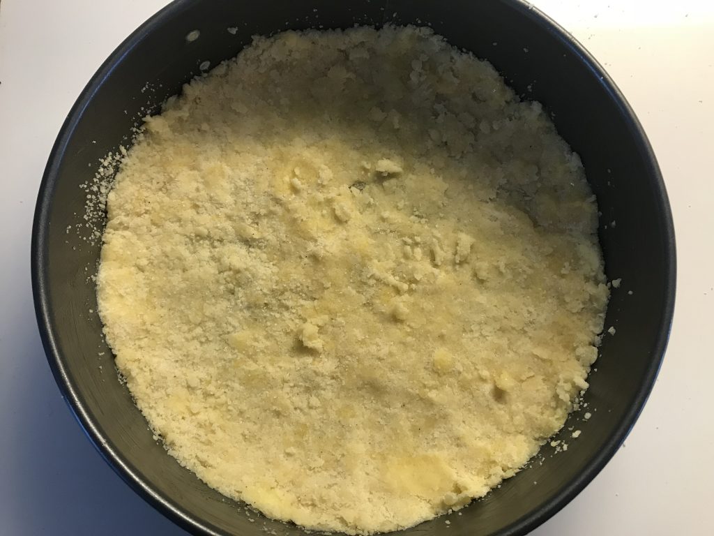 Sekoita kananmuna joukkoon ja painele voidellun irtopohjavuoan pohjalle ja hieman reunoille.