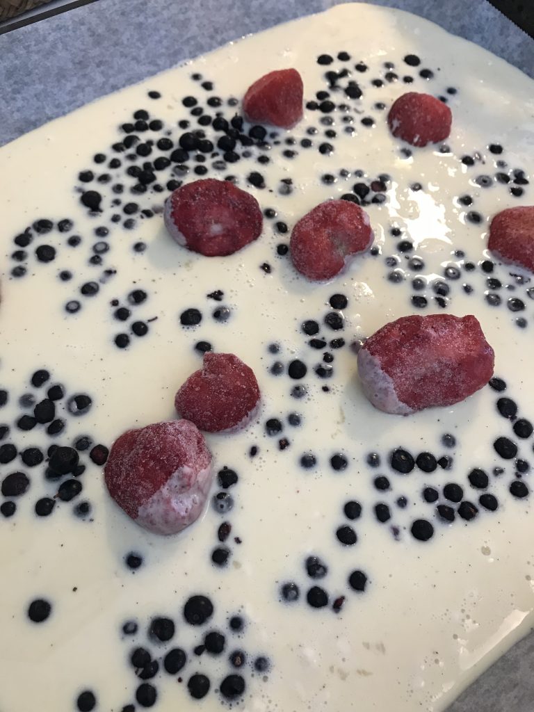250 g pakastemarjoja (esimerkiksi mansikoita ja mustikoita)
