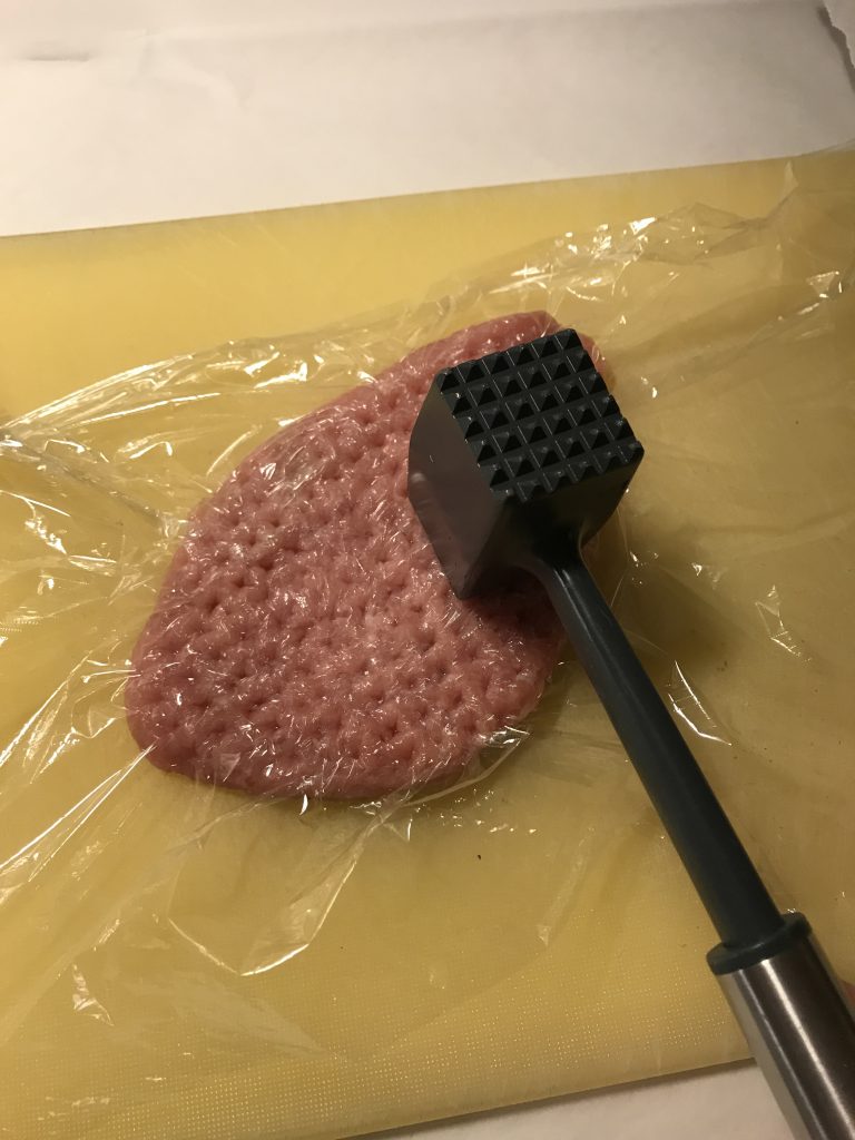 Ota liha huoneenlämpöön noin tunti ennen paistamista. Leikkaa filee ohuiksi viipaleiksi ja nuiji ohueksi elmukelmun alla.