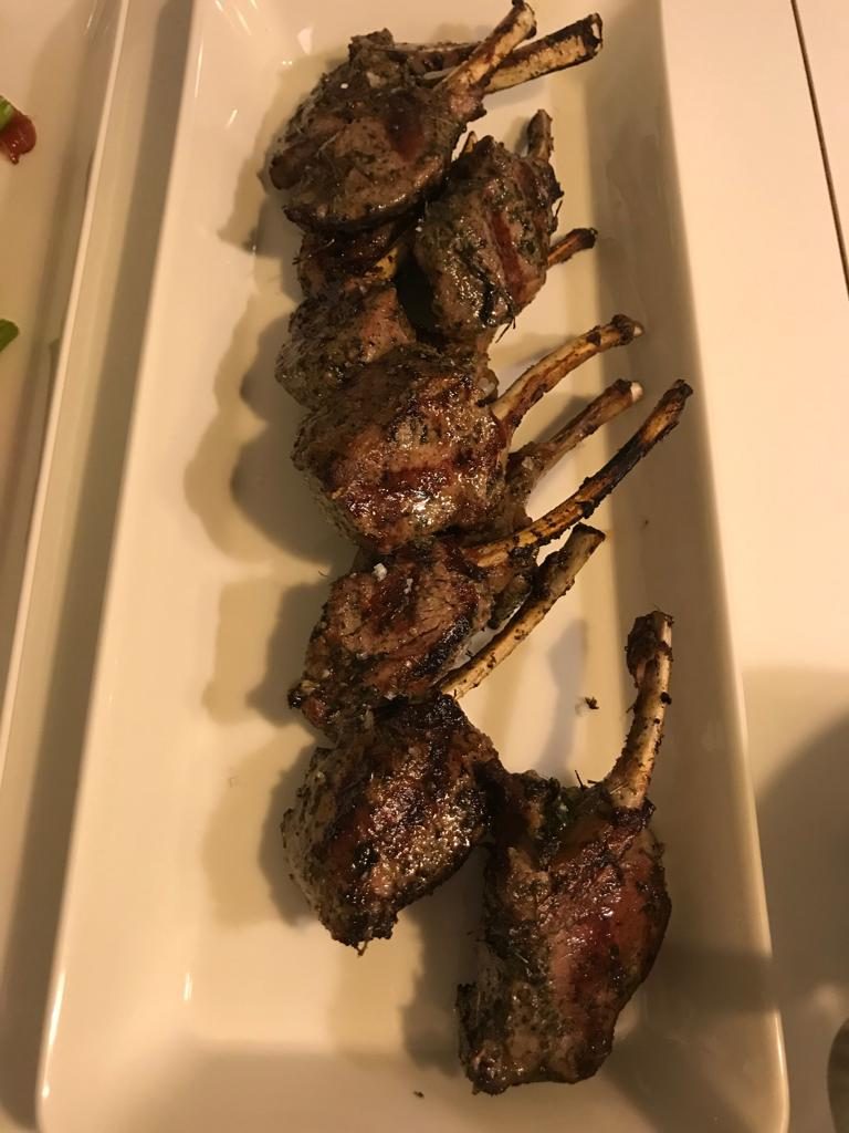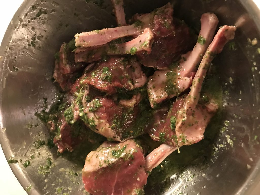 Ostin karitsan kareet maustamattomina lihatiskiltä ja tein marinadin itse. Citymarketissa näytti olevan lihatiskillä hyvännäköistä valmiiksi marinoituakin lihaa, mutta pidän marinoida lihan itse. Laitoin kareet marinadiin jo lauantai-iltana ja kalttasin myös paprikakeiton paprikat lauantaina, joten sunnuntaihin jäi vain salaatin teko, parsojen valmistus sekä tietysti kareen grillaus.