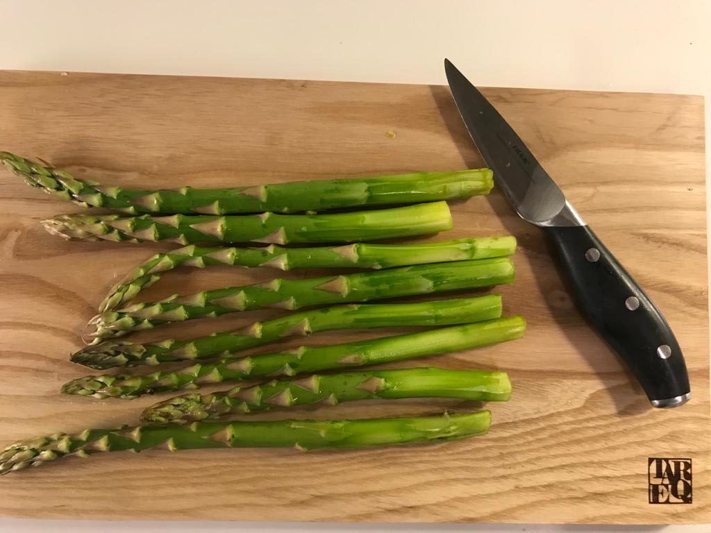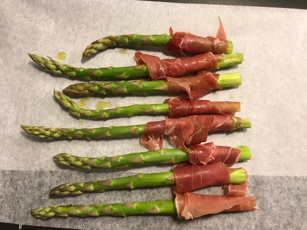 Kieräytä parmankinkkua parsan tyveen. Voitele varovasti pienellä määrällä oliiviöljyä.