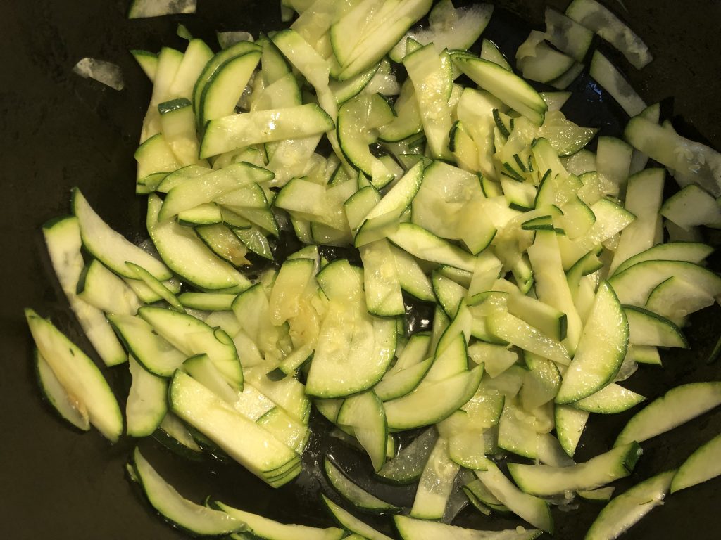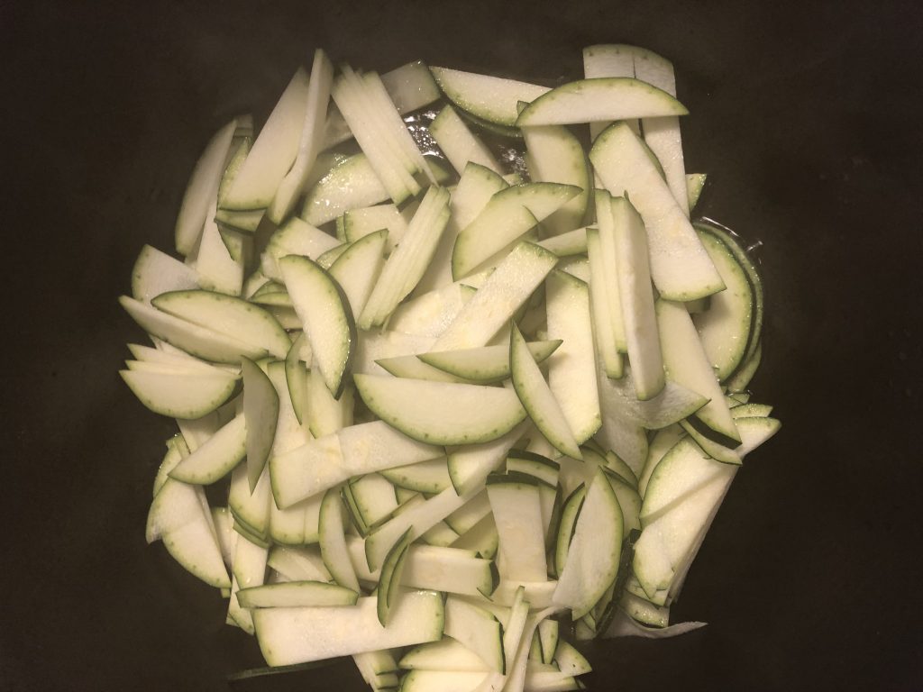 1 keskikokoinen kesäkurpitsa ohuina suikaleina ja sitten viipaleina