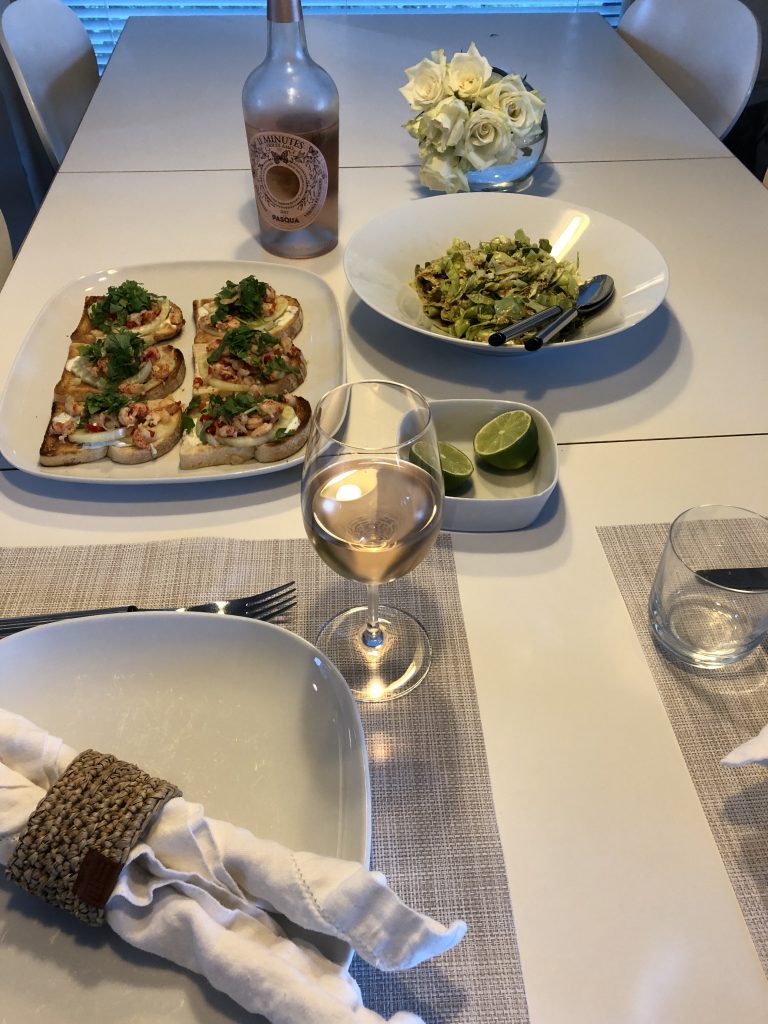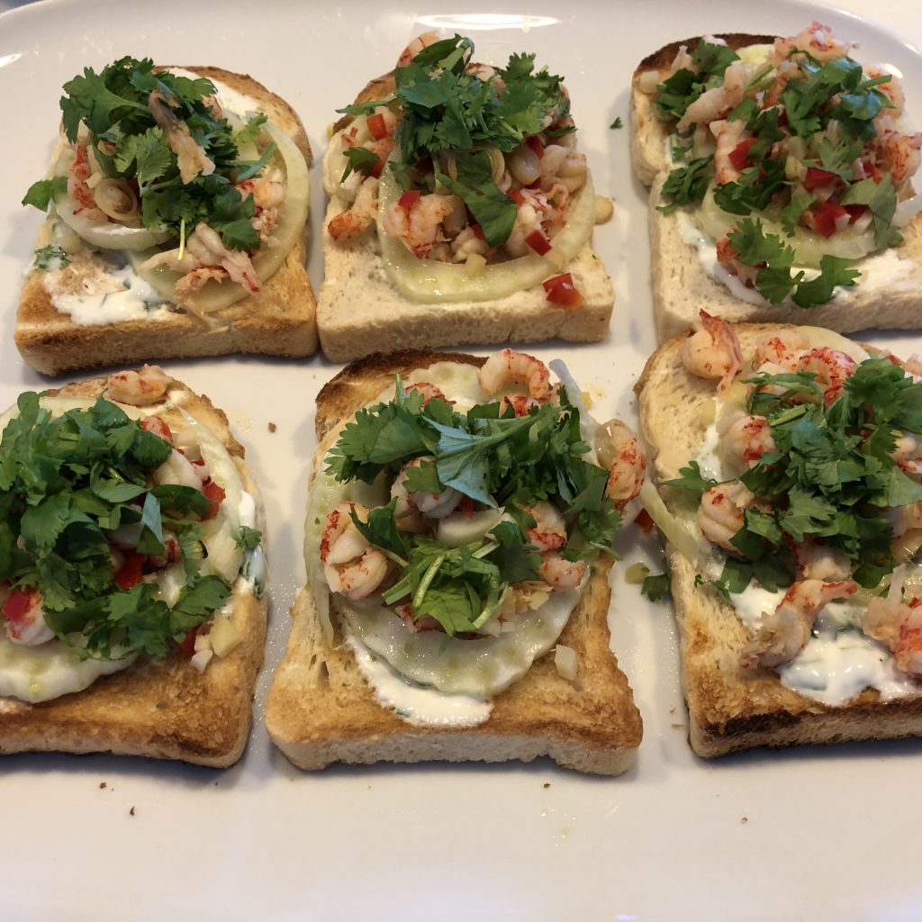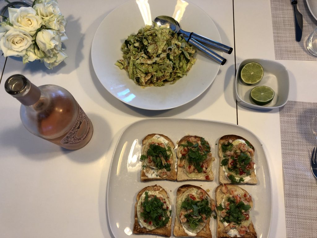 Tein eilen illalla miehelle ja minulle iltapalaksi lämpimiä rapuleipiä ja kaalisalaattia, molemmat aasialaisittain maustettuina. Olemme viime aikoina syöneet pitkälti samoja ruokia, kuin olen blogissa jo ohjeita jakanutkin, sekä viikonloppuisin reissun päällä ravintoloissa, siksi on ollut hieman hiljaiseloa uusista ohjeista.