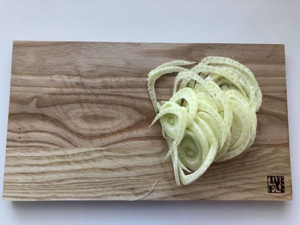 Valmista ensin levite. Raasta limen kuori ja sekoita kaikki ainekset keskenään. Nosta jääkaappiin odottamaan. Valmista seuraavaksi fenkoli lisäke. Suikaloi pieni fenkoli tai puolikas iso niin ohuiksi siivuiksi kuin mahdollista. Laita fenkolit astiaan ja lisää muut ainekset joukkoon. Sekoita ja jätä odottamaan.