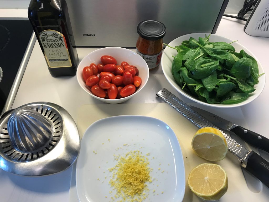 1 sitruunan kuori raastettuna ja mehu puristettuna