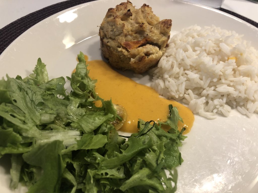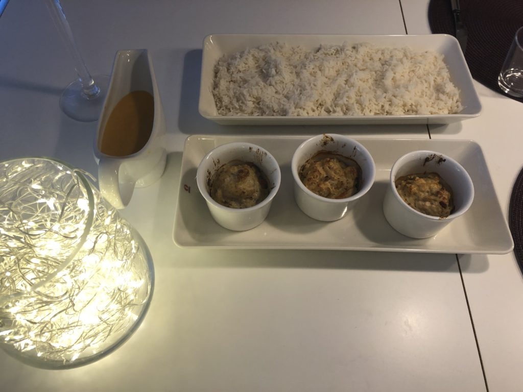 Pojat ensin vierastivat yksittäisiin annosastioihin tekemääni mureketta, mutta maistettuaan tilasivat sitä heti uusiksi seuraavana päivänä. Se on aina paras palaute, että ruokaa toivotaan tehtävän myös uusiksi! Lisukkeeksi tein currykastikkeen (jauhe+maito Knorr) riisiä sekä salaattia.