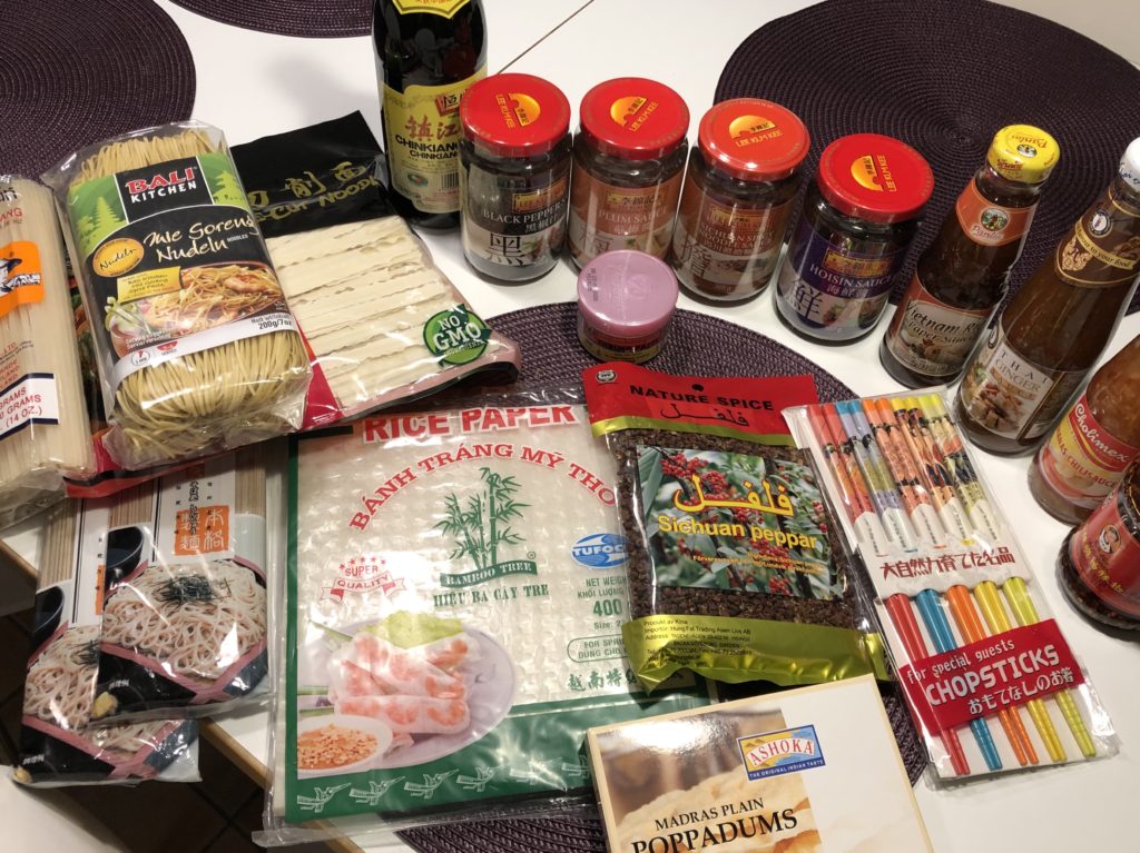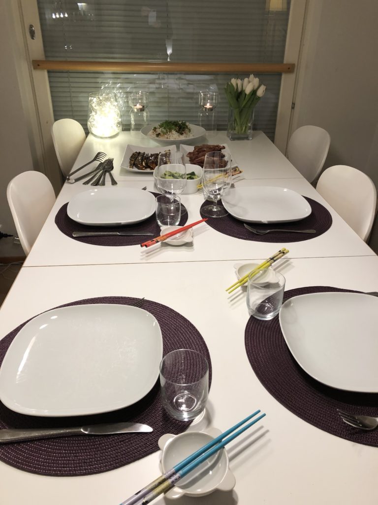 Poikien lätkät pitivät meidät tiukasti kotona niin välipäivät kuin Uuden vuoden jälkeiset vapaatkin. Se mahdollisti kuitenkin iltaruokaan panostamisen. Kesän 2019 Ruoka&Viini lehdessä oli herkullisen näköisiä kiinalaisia grilliruokia, mutta niiden kaikkia raaka-aineita ei saa tavallisista ruokakaupoista, joten nyt viimein oli syytä lähteä pitkästä aikaa Hakaniemen ja Kallion etnisiin ruokakauppoihin. Kävimme Kalliossa kiinalaisessa ruokakaupassa, jossa en ole ennen käynyt. Sieltä sain kaikki puuttuvat ainekset eli mustan riisiviinietikan sekä rapean chilitahnan. Jatkoimme kuitenkin vielä Hakaniemen Jiahe Asian Markettiin ja sieltäkin tarttui mukaan jos mitä kastikkeita ja nuudeleita.