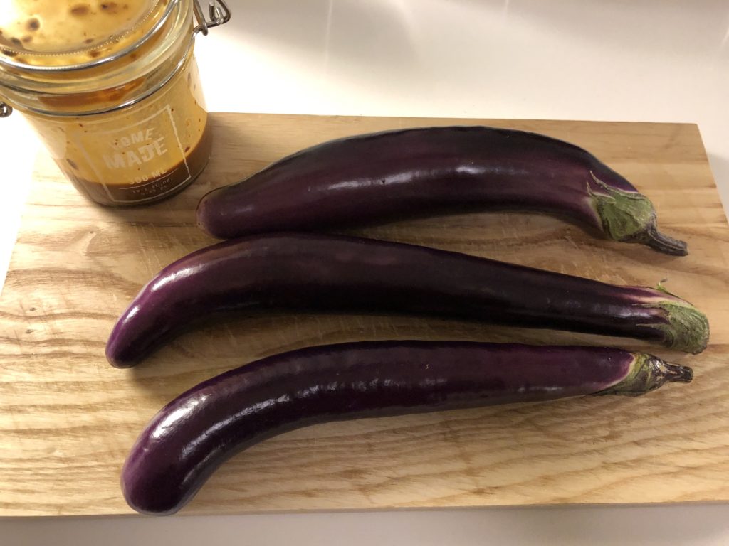 Puolita munakoisot tai jos käytät paksumpia munakoisoa, leikkaa ne noin neljäksi viipaleeksi. Grillaa ne kypsiksi molemmin puolin, 10 minuutin ajan. Laita munakoisot tarjouluastiaan ja valuta kastike päälle.