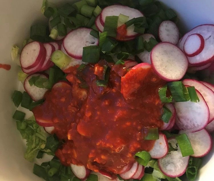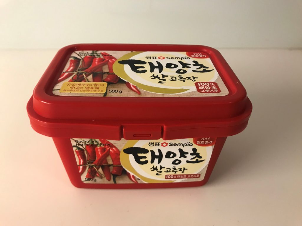 Tässä annoksessa on myös itsetekemääni pikakimchiä, jonka olin tehnyt jo edellisenä viikonloppuna silloiseen ruokaan. Kimchi säilyy jääkaapissa 3 viikkoa. Huomaa valmistaa kimchi ajoissa, sen pitää fermentoitua vuorokausi. Uusi raaka-aine, joka piti ostaa tähän ruokaan oli korelainen gochujang-tahna. Purkista on kuva alla ja sain sen ihan lähi Citymarketista. Tahna ei ollut liian tulista, kun se oli yhdistetty korelaisessa yleisdipissä muihin raaka-aineisiin, ainakin esikoinen popsi sitä ilolla helposti. Lopun dipin käytin seuraavan viikon aikana muihin aasialaistyyppisiin ruokiin. Inhoan ruuan poisheittoa, minulle tulee siitä todella huono omatunto ja yritän käyttää kaikki aina loppuun tai pakastaa. Tiesitkö, että myös ruskehtuneen banaanin voi pakastaa ja käyttää smoothiessa? Tämän vinkin minulle kertoi norjalainen kollegani, innokas smoothie nainen. Myös keitetyn riisin voi pakastaa ja tuoreyrtit, ne nuupahtavat nopeasti, mutta maustavat pakkasestakin otettuna ruokaa hyvin.