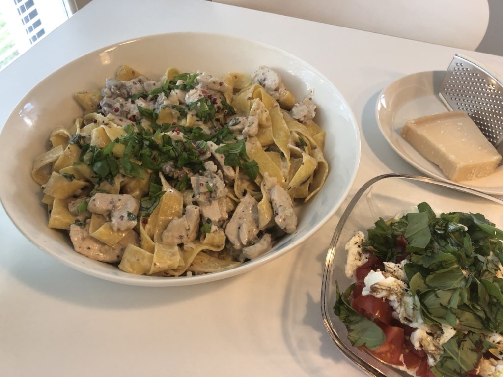 Pidän kovasti rosepippurista, mutta sitä tulee silti harvemmin käytettyä. Tämä pasta sai alkunsa siitä, että minun teki mieleni nimenomaan rosepippuria ja sitten muistin tämän erinomaisen pastan ohjeen. Käytin rosepippuria runsaasti, josta pojat eivät ihan kympillä innostuneet, mutta söivät kuitenkin. Pitää vain totutella eri makuihin, sitä mieltä olen lasten syömisestä. Toki, jos jokin on todella vastenmieleinen, kuten lämmin porkkana kuopukselle, en koskaan pakota syömään.