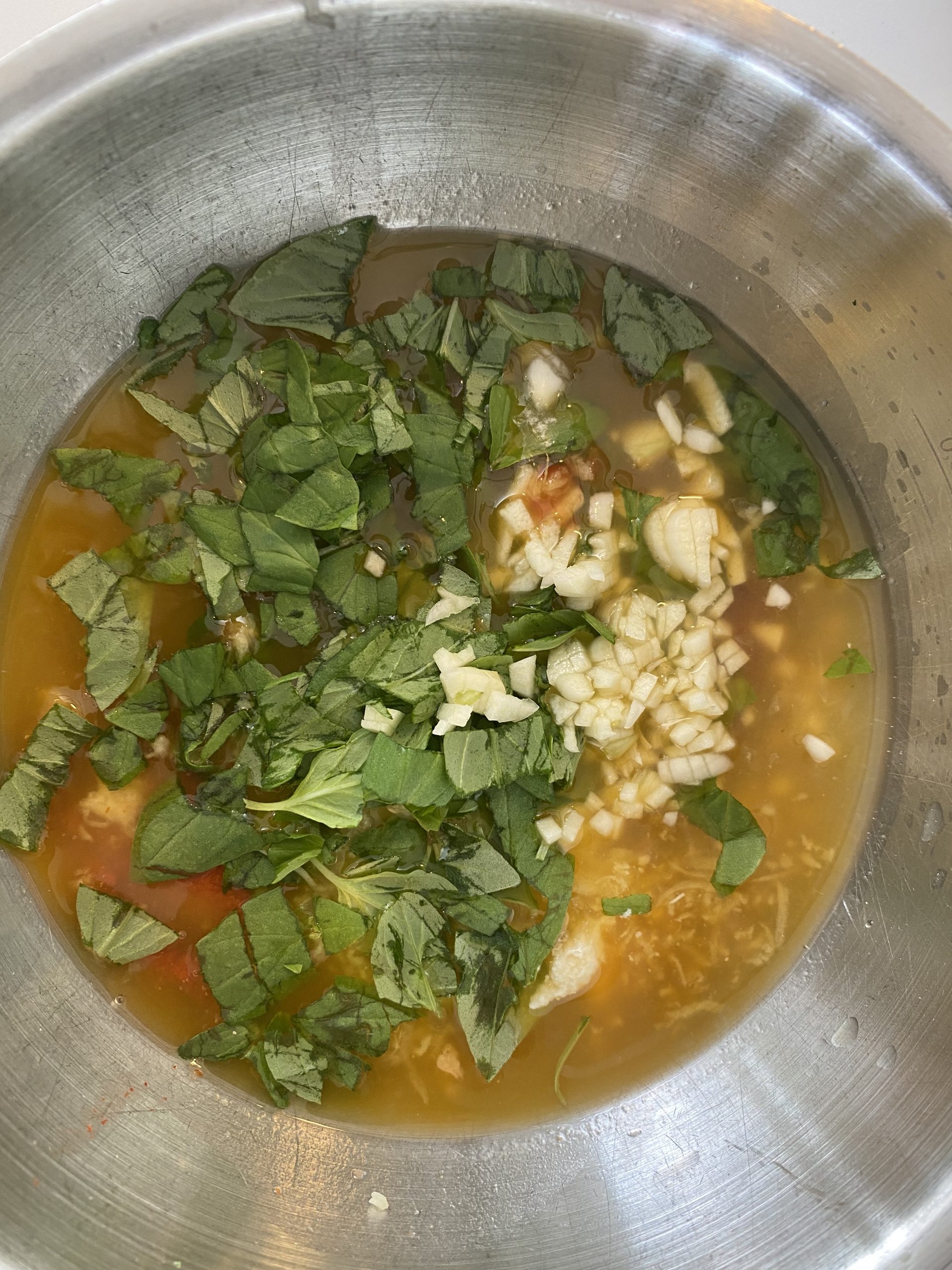 Sekoita oliivihakkeluksen ainekset keskenään.