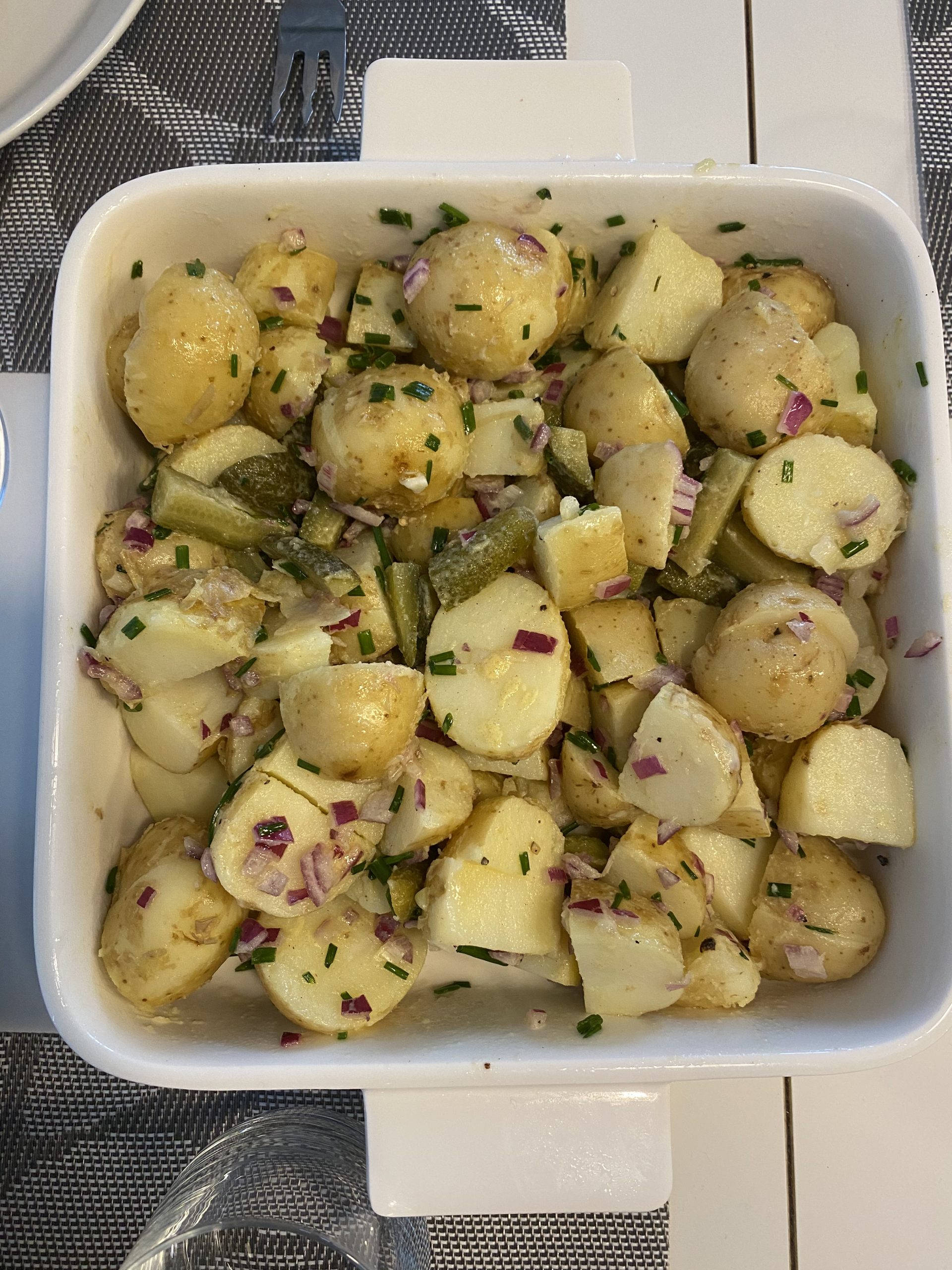 Peruna-suolakurkkusalaatti sinappivinaigretten kanssa