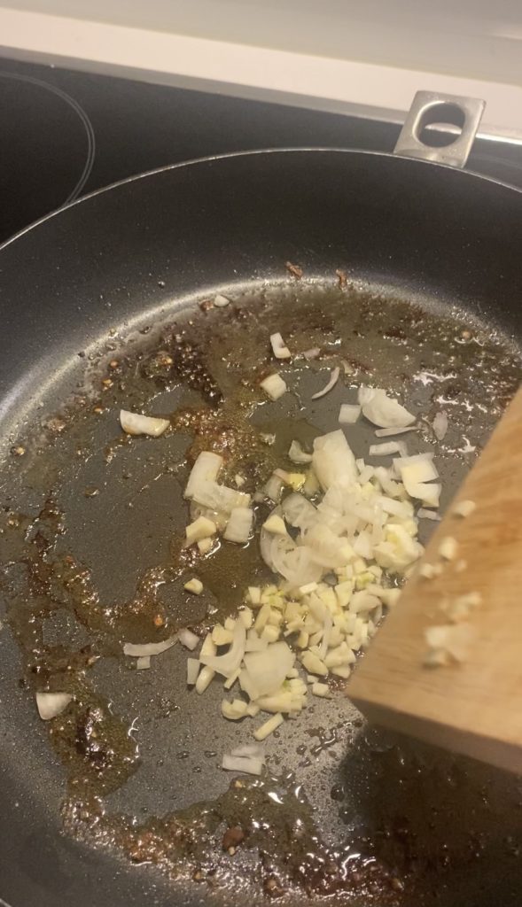 Silppua sipulit ja lisää pannulle. Kuulota, älä ruskista. Käytä siis samaa pannua, ilman että huuhtelet sitä.