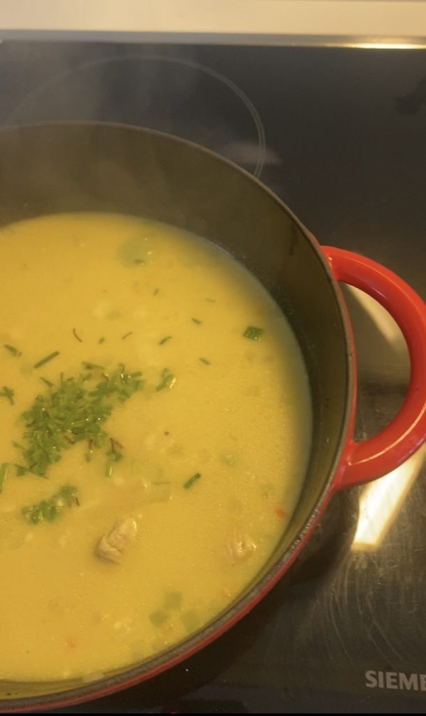 Tein tämän kanakeiton yhtenä lauantaina, kun pojat tarvitsivat melko pian aamiaisen jälkeen lounaan ennen päivän lätkäpelejä. Tämä valmistui todella helposti ja maistui kaikille. Ohje on Hesarin Ruokatorstai kirjasta. Olin tehnyt tätä aiemminkin vuonna 2011, koska reseptin vieressä oli merkintä ”Tosi hyvä, helppo ja nopea 12/11!” Ja ihan samaa mieltä olin siis 10 vuotta myöhemminkin tästä keitosta.