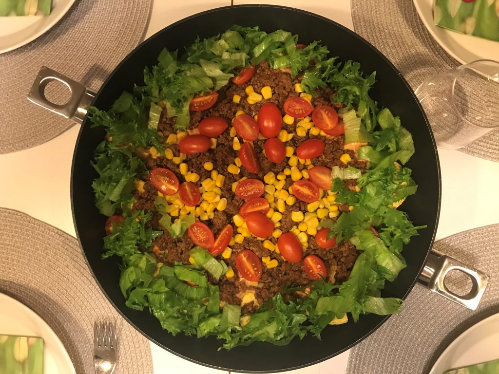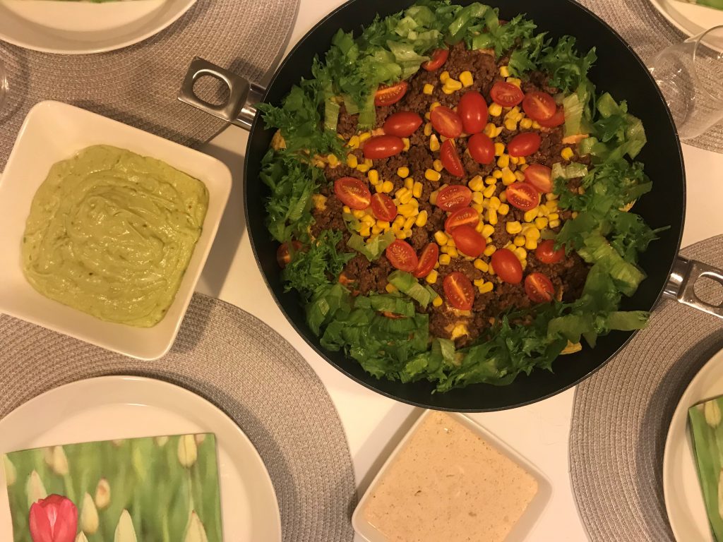 Olen tehnyt tätä nacholautasta jo opiskeluaikoinani ystävilleni ja nykyään myös perheelle niinä perjantai-iltoina, kun ruokaa on oltava pöydässä, mutta kulut viikko painaa yhä harteissa. Nacholautasen lisukkeena tarjoan guacamolea, jonka teen avocadoista, kermaviilistä ja Santa Marian guacamole mausteseoksesta. Lisäksi teen toisen kastikkeen kermaviilistä ja tacomaustepussista. Voit laittaa nacholautaseen haluamiasi vihanneksia. Minulla oli tällä kertaa kirsikkatomaatteja, maissia ja jäävuorisalaattia. Voit laittaa lisäksi vaikka jalopenoja, jos ruokaseurueesi pitää niiden tulisesta mausta. Tai tarjoa erikseen, jos jalopenot eivät maistu lapsille. Tästä annoksesta riittää koko neljän hengen perheelle nachoja.