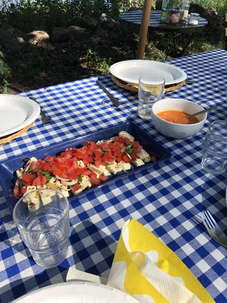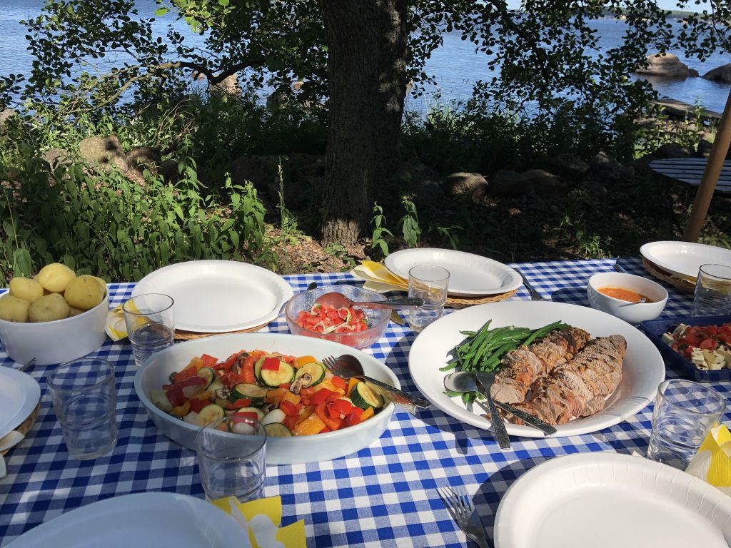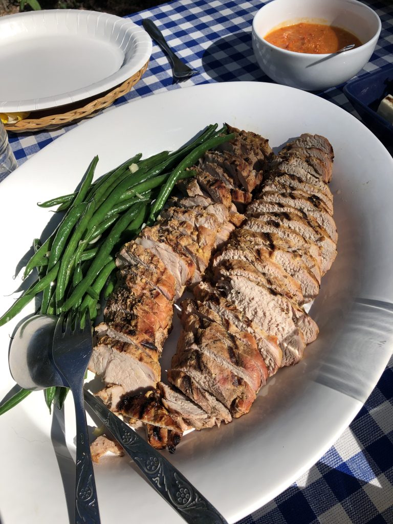Juhannussunnuntain pääraaka-aineemme oli porsaan sisäfile. Tein marinadin valmiiksi puhtaaseen lasipurkkiin jo kotona, näin fileen sai helposti laitettua marinoitumaan jo Juhannuspäivän iltana. Lisukkeena meillä oli Mojo-kastiketta, jota teen meille joka kesä ja tarjoan porsaan, kanan ja/tai uusien perunoiden kanssa. Mojo juontaa juurensa Espanjaan, jossa sitä syödään ryppyperinoiden kanssa. Jos olet tuonut Espanjasta matkalta valmista Mojo-kastiketta kotiin, niin suosittelen lämpimästi kokeilemaan tätä. Itse tehtynä kastike on huomattavasti parempaa, raikaampaa ja se on yksinkertaista valmistaa. Voit vaikka laittaa osan pakkaseen, vaikkakin se säilyy hyvin muutaman viikon jääkaapissa.